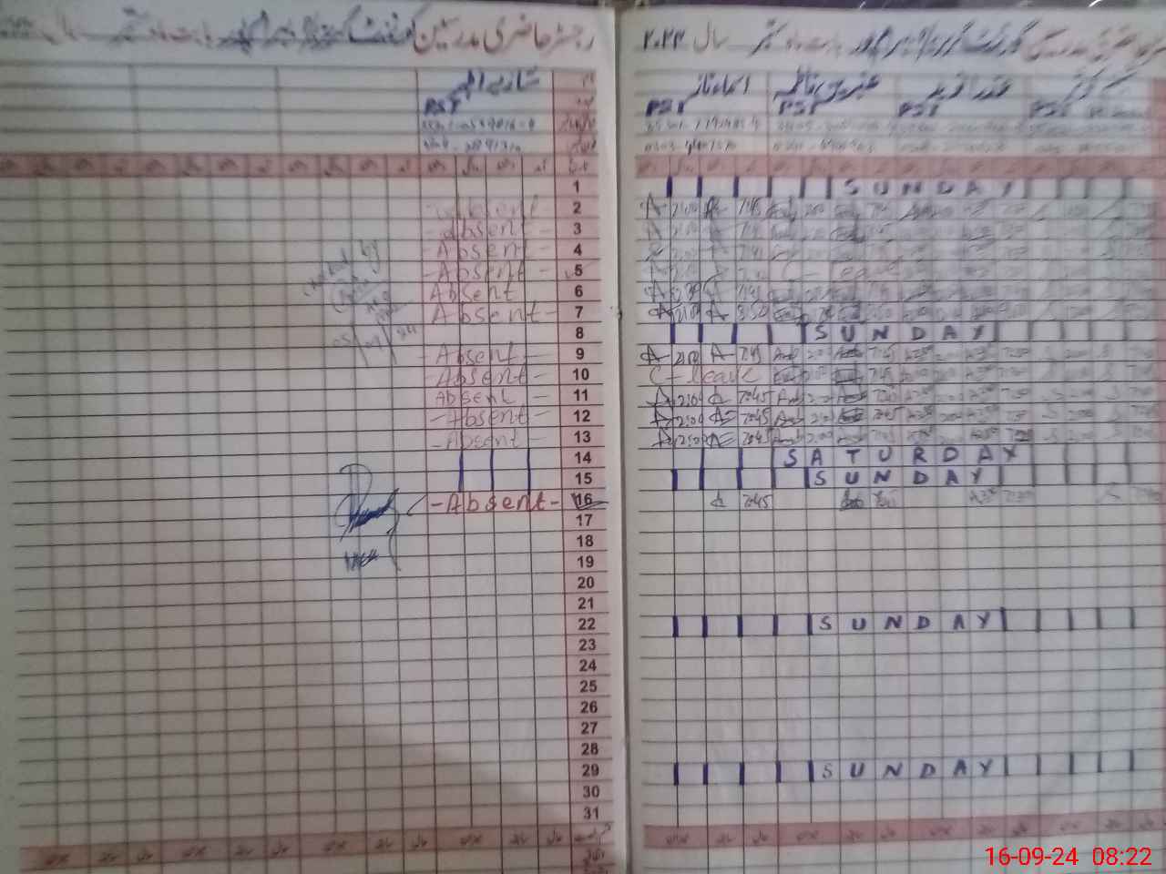 | CNIC | Full Name | Designation | R/C | Absence During Last Calender Month |