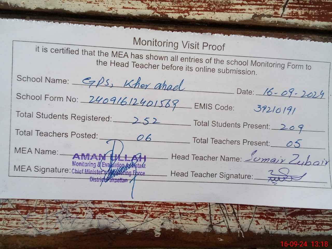 | EMIS Code: 39210191 | Name of School: GPS KHAIR ABAD PO PAKPATTAN | |||