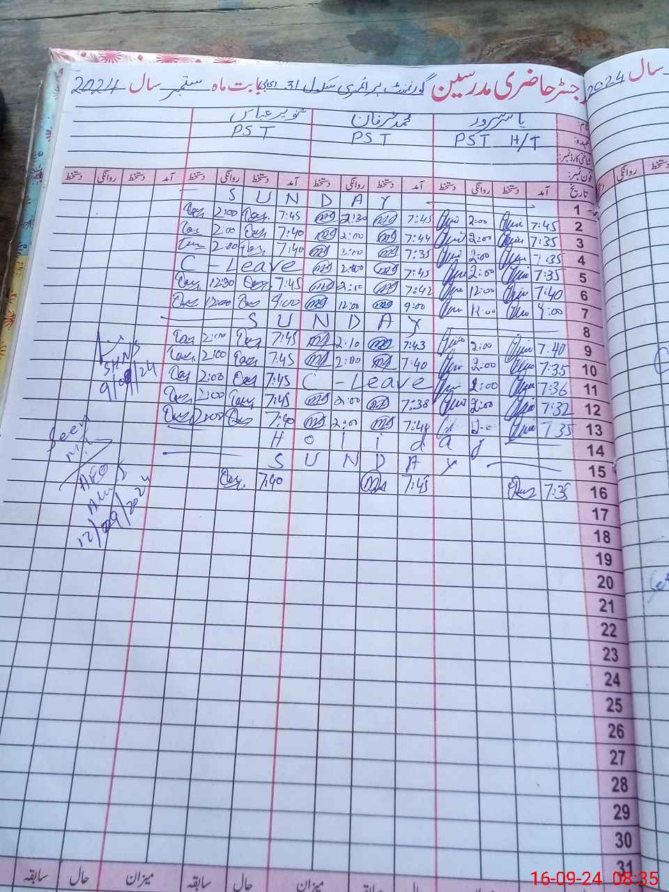 | CNIC | Full Name | Designation | R/C | Absence During Last Calender Month |