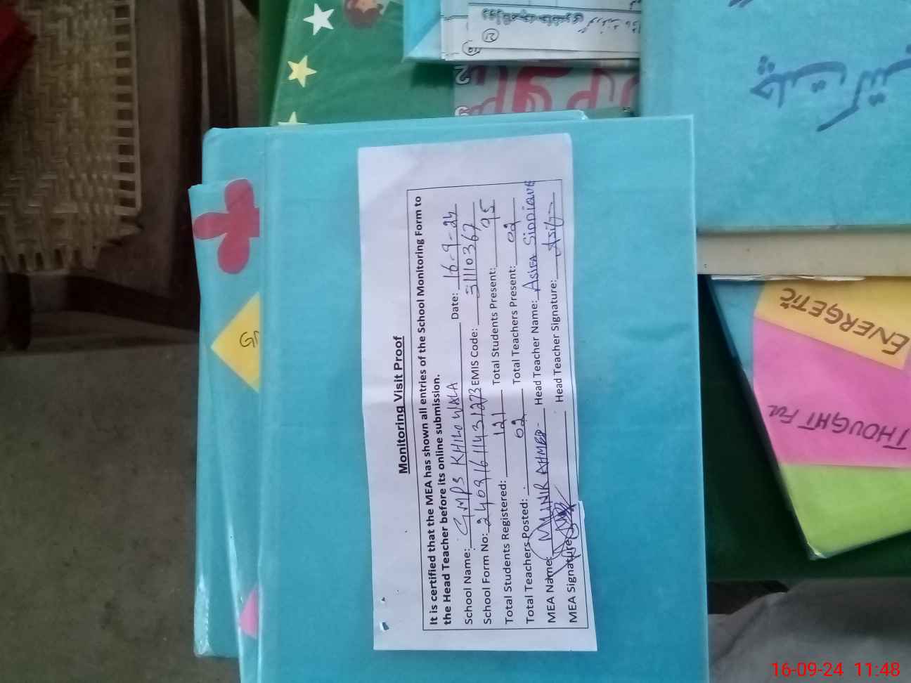 | Attendance Register | Head Teacher | MEA with School | Visit Proof |