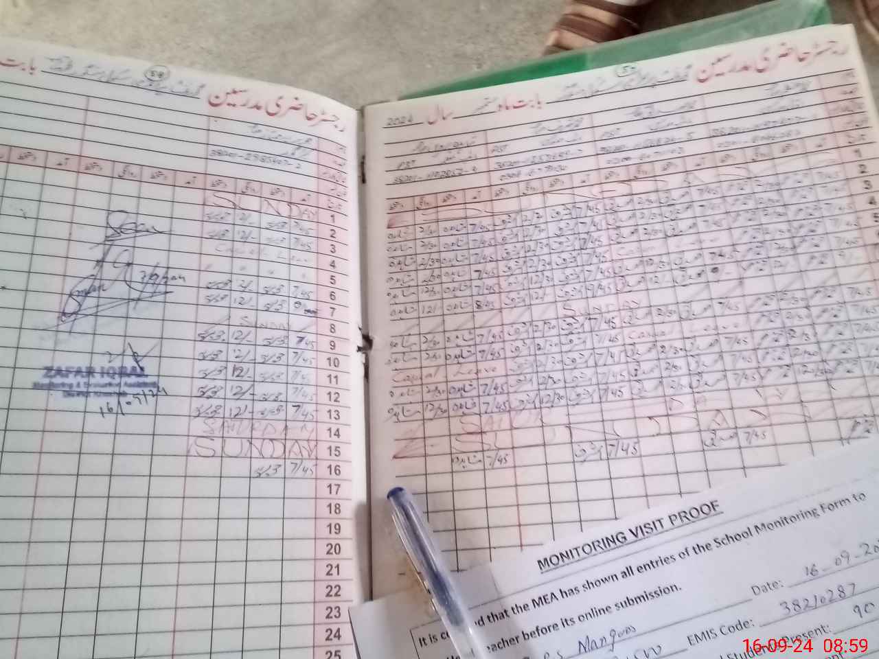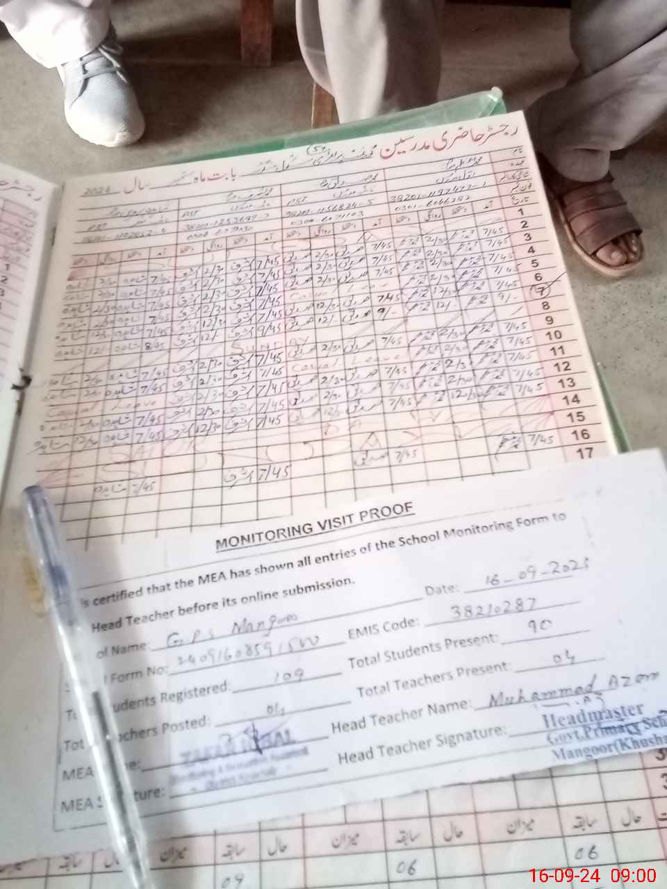 | Attendance Register | Head Teacher | MEA with School | Visit Proof |