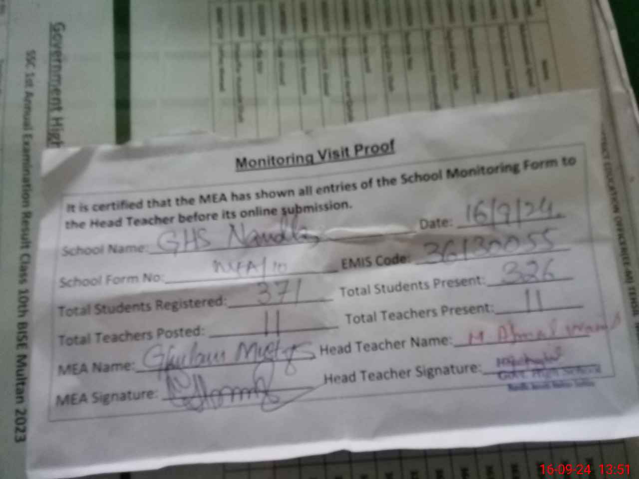| EMIS Code: 36130055 | Name of School: GHS NANDLA JANOBI | |||