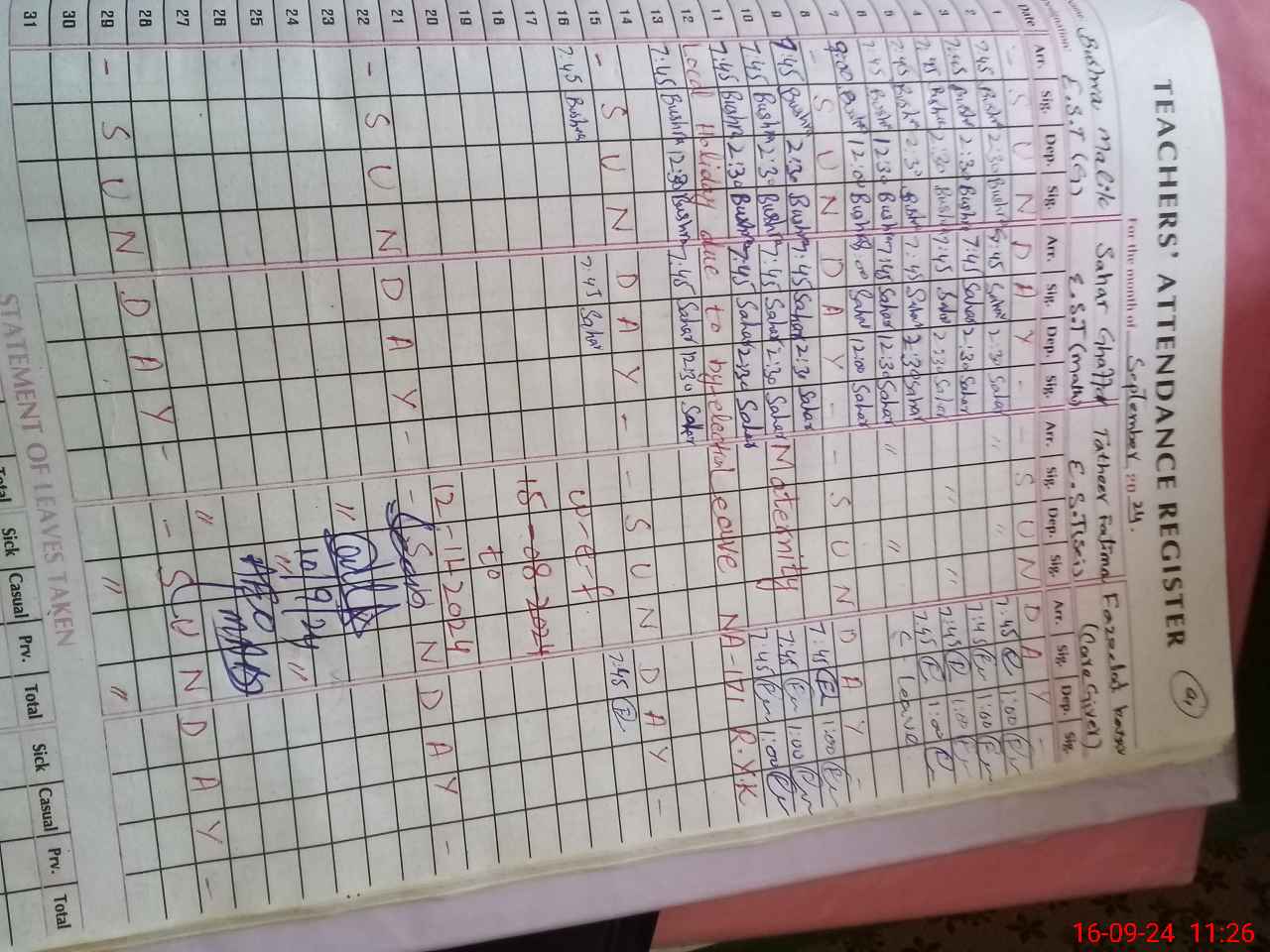 | Leave | Duty | Absent | Maternity | Medical | Ex- Pak |