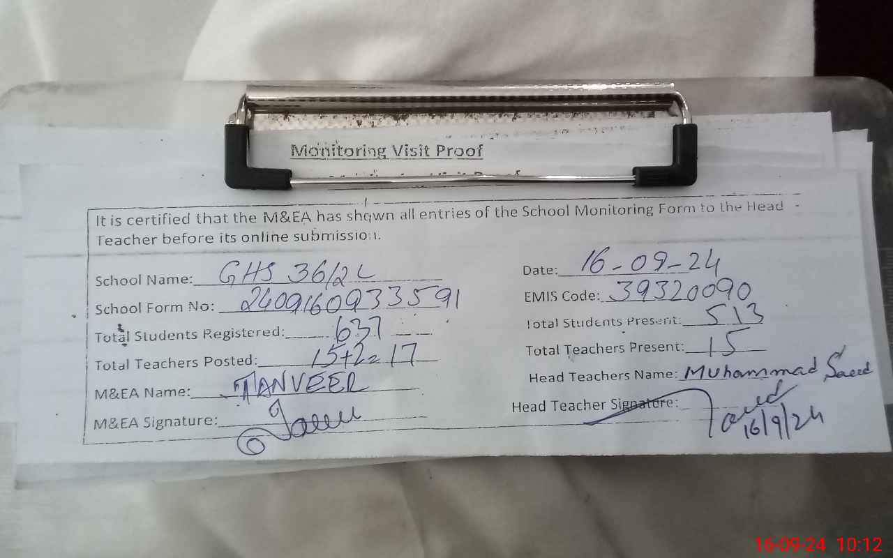 | EMIS Code: 39320090 | Name of School: GHS CHAK NO. 36/2-L | |||