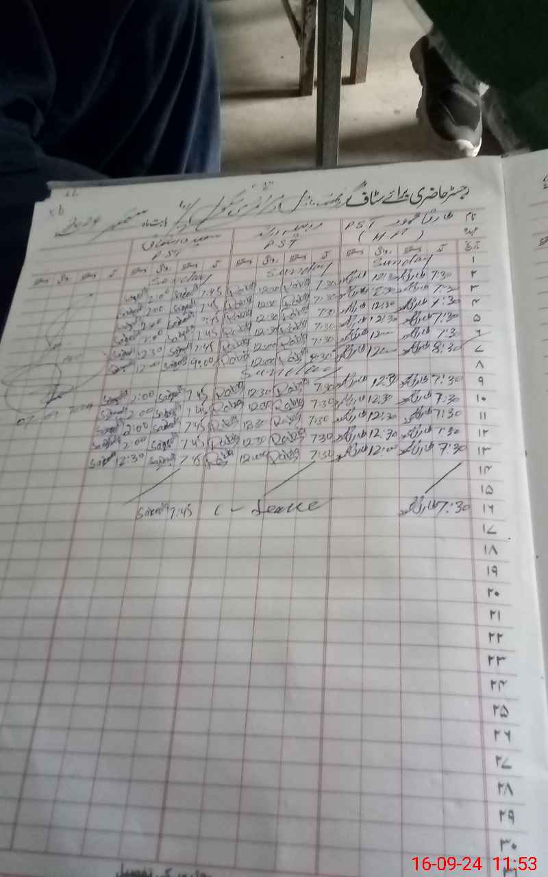 | CNIC | Full Name | Designation | R/C | Absence During Last Calender Month |