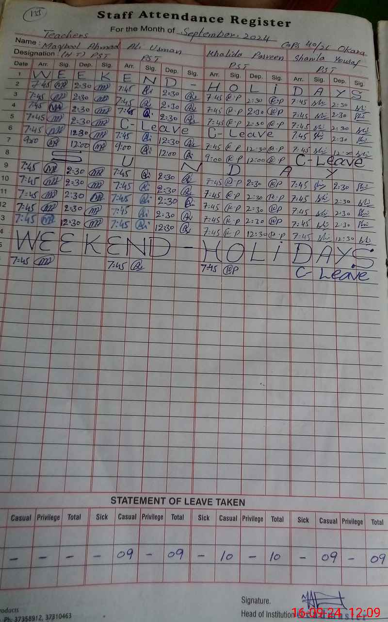 | Name: Ma**** Ah**** Designation: (School Headmaster's/Headmistress's) PST Phone/Cell Number: 03**** |