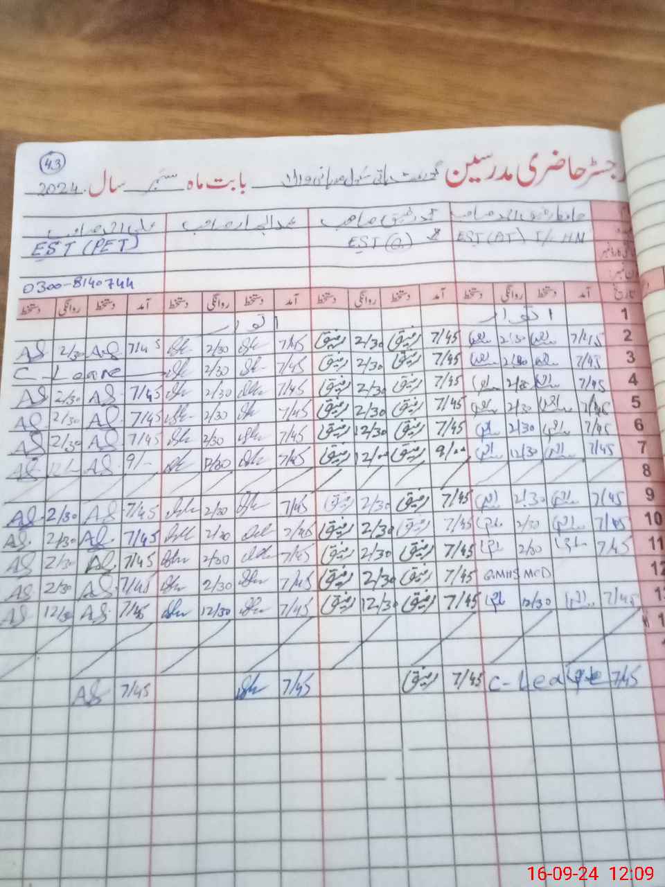 | Name: Mu**** Ra**** An**** Designation: (School Headmaster's/Headmistress's) H M Phone/Cell Number: 03**** |