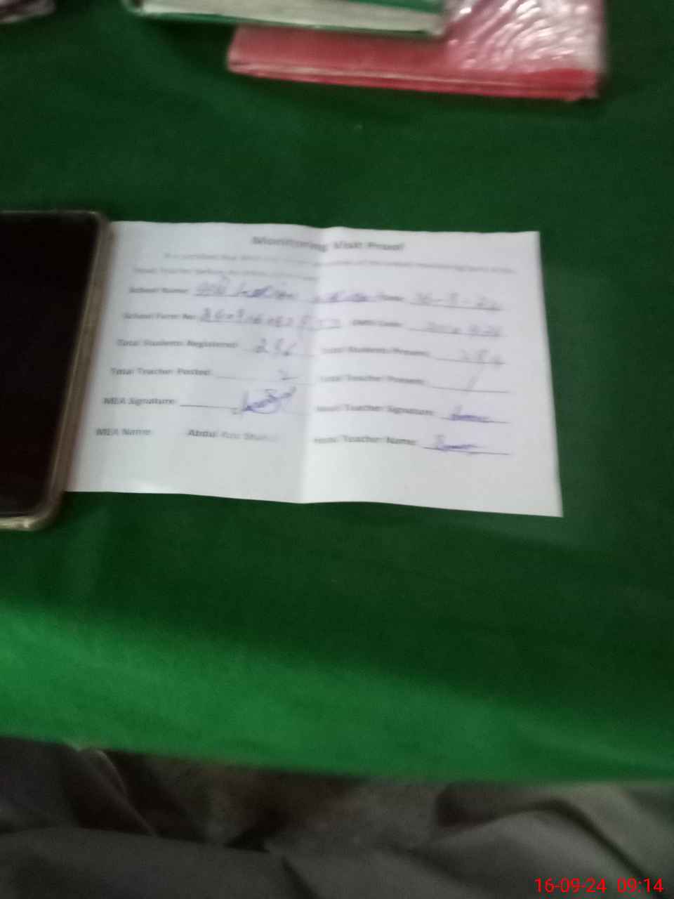 | Attendance Register | Head Teacher | MEA with School | Visit Proof |
