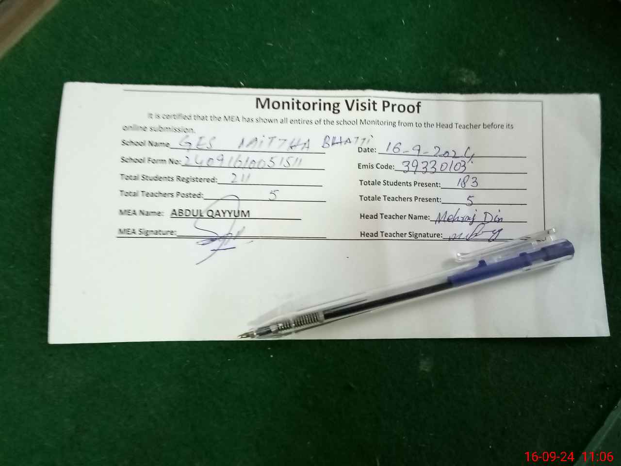| EMIS Code: 39330103 | Name of School: GES MITHA BHATTI | |||