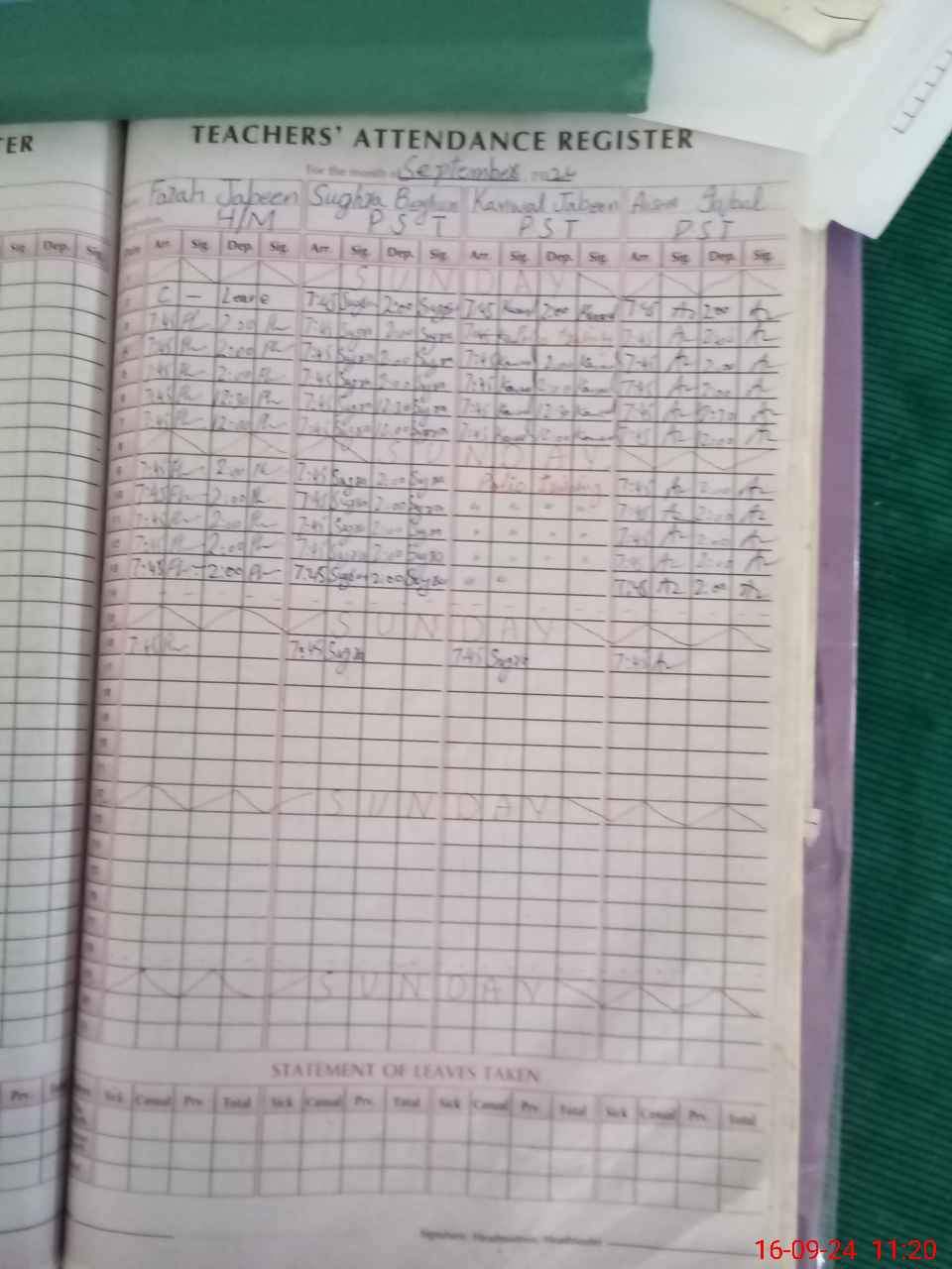 | Leave | Duty | Absent | Maternity | Medical | Ex- Pak |