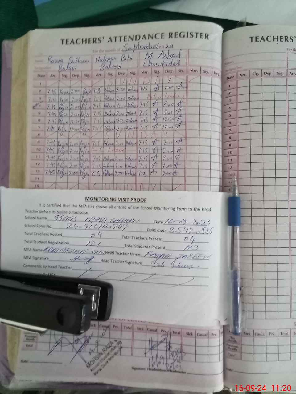 | Attendance Register | Head Teacher | MEA with School | Visit Proof |