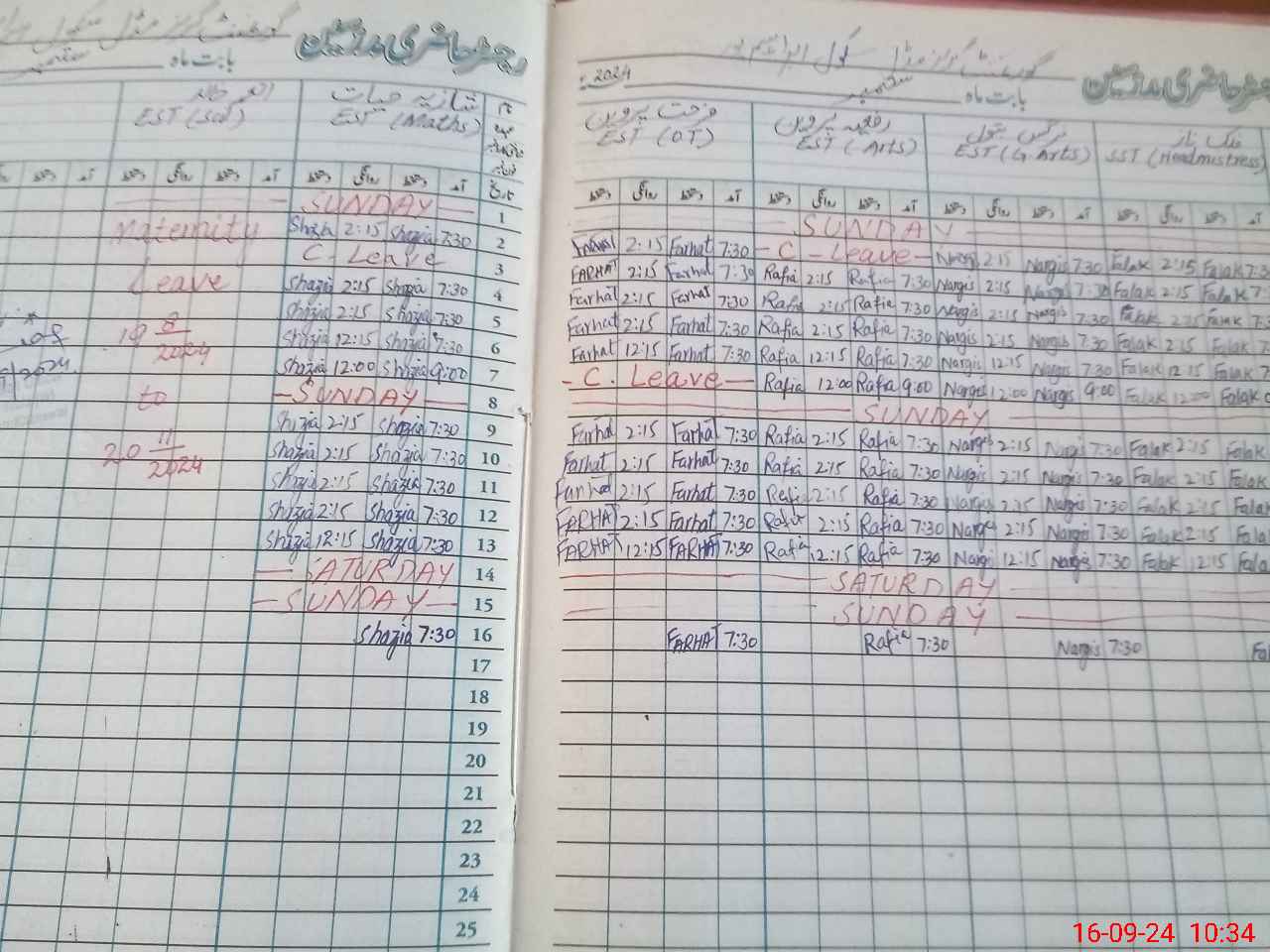 | Leave | Duty | Absent | Maternity | Medical | Ex- Pak |