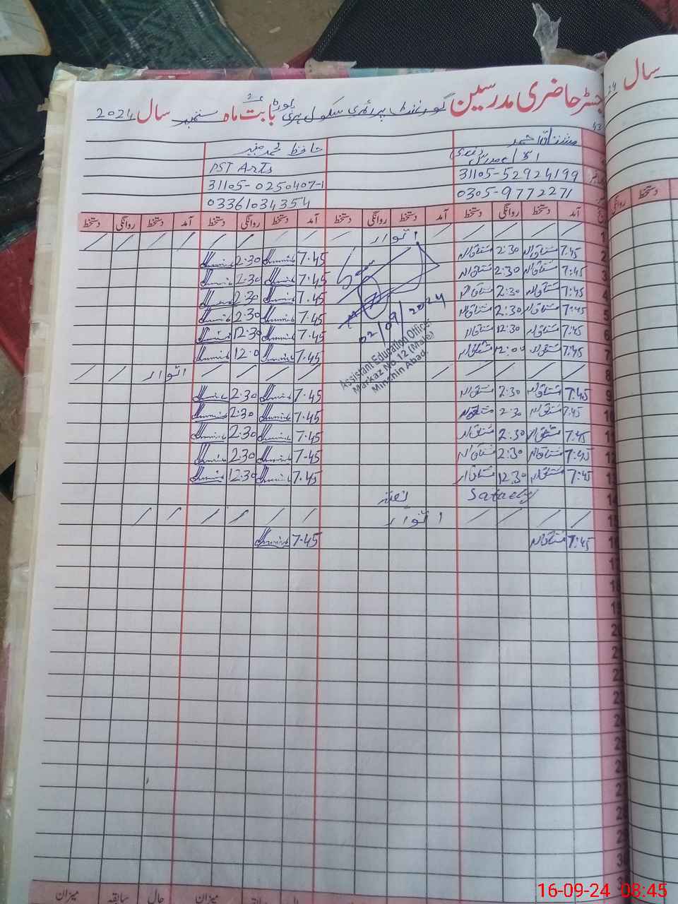 | Name: Mu**** Ah**** Designation: (School Headmaster's/Headmistress's) Pst Phone/Cell Number: 03**** |