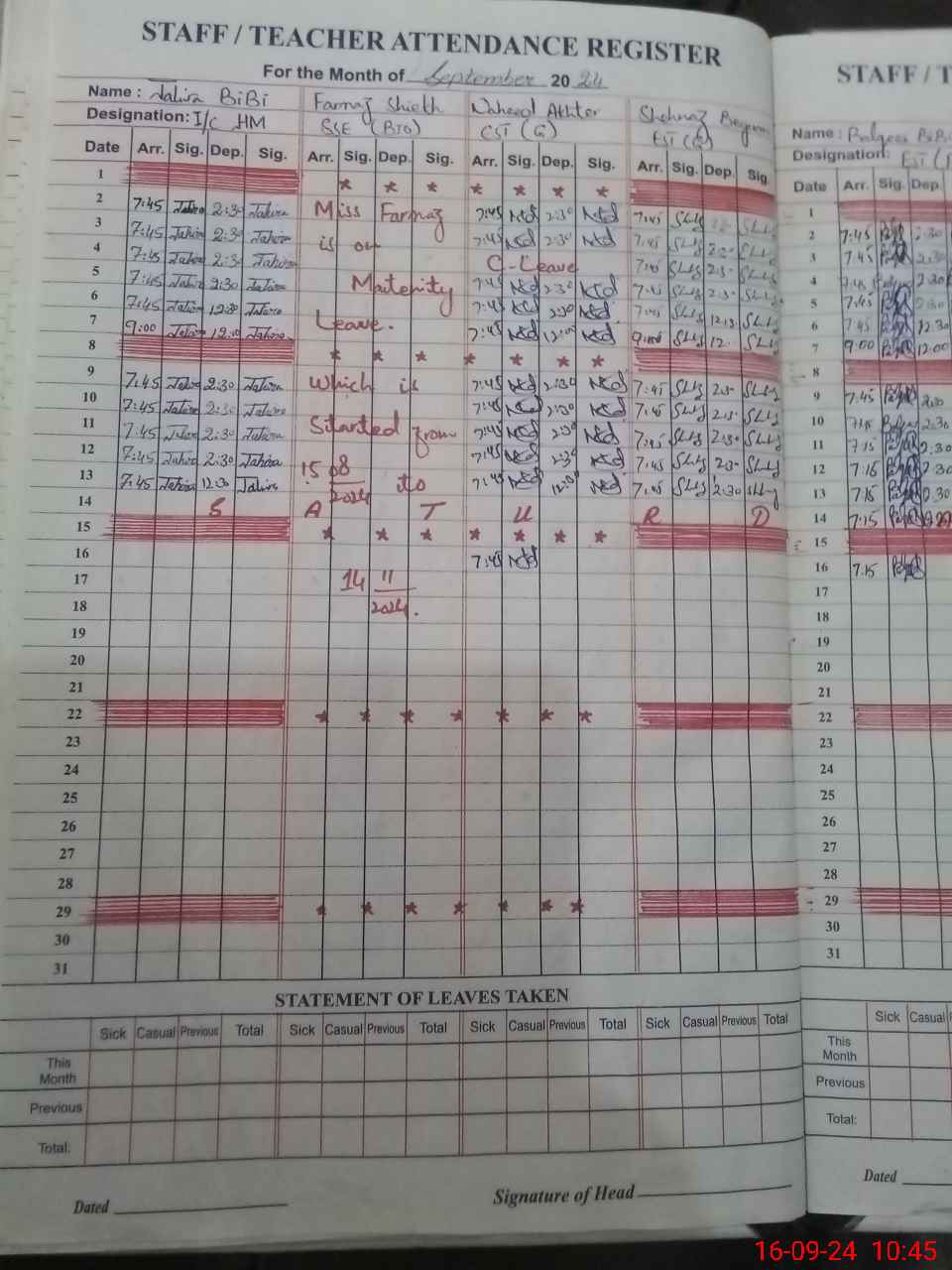 | Leave | Duty | Absent | Maternity | Medical | Ex- Pak |