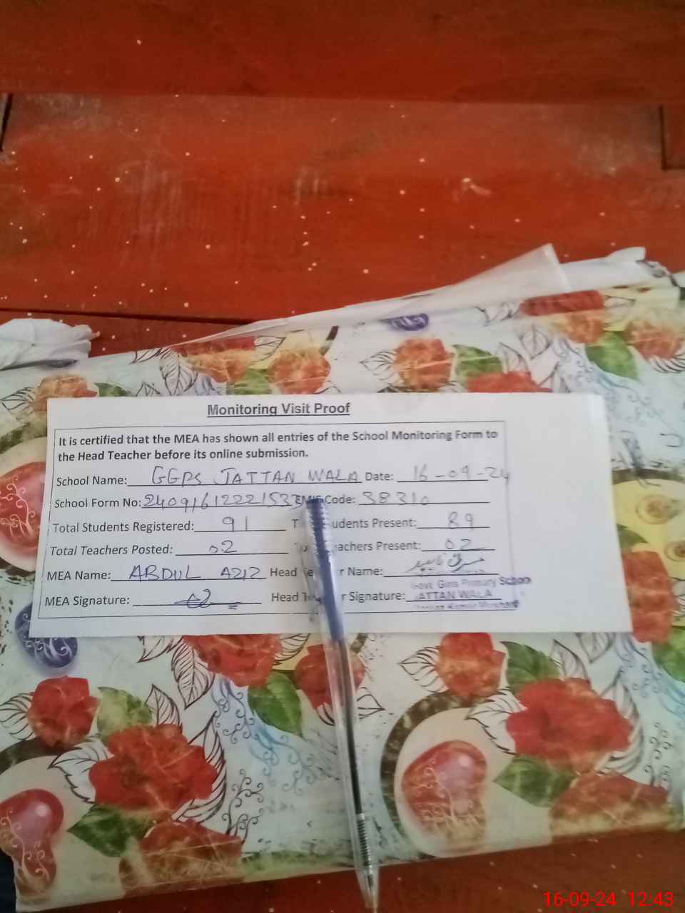 | EMIS Code: 38310379 | Name of School: GGPS JATAN WALA | |||
