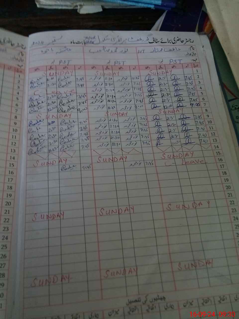 | CNIC | Full Name | Designation | R/C | Absence During Last Calender Month |