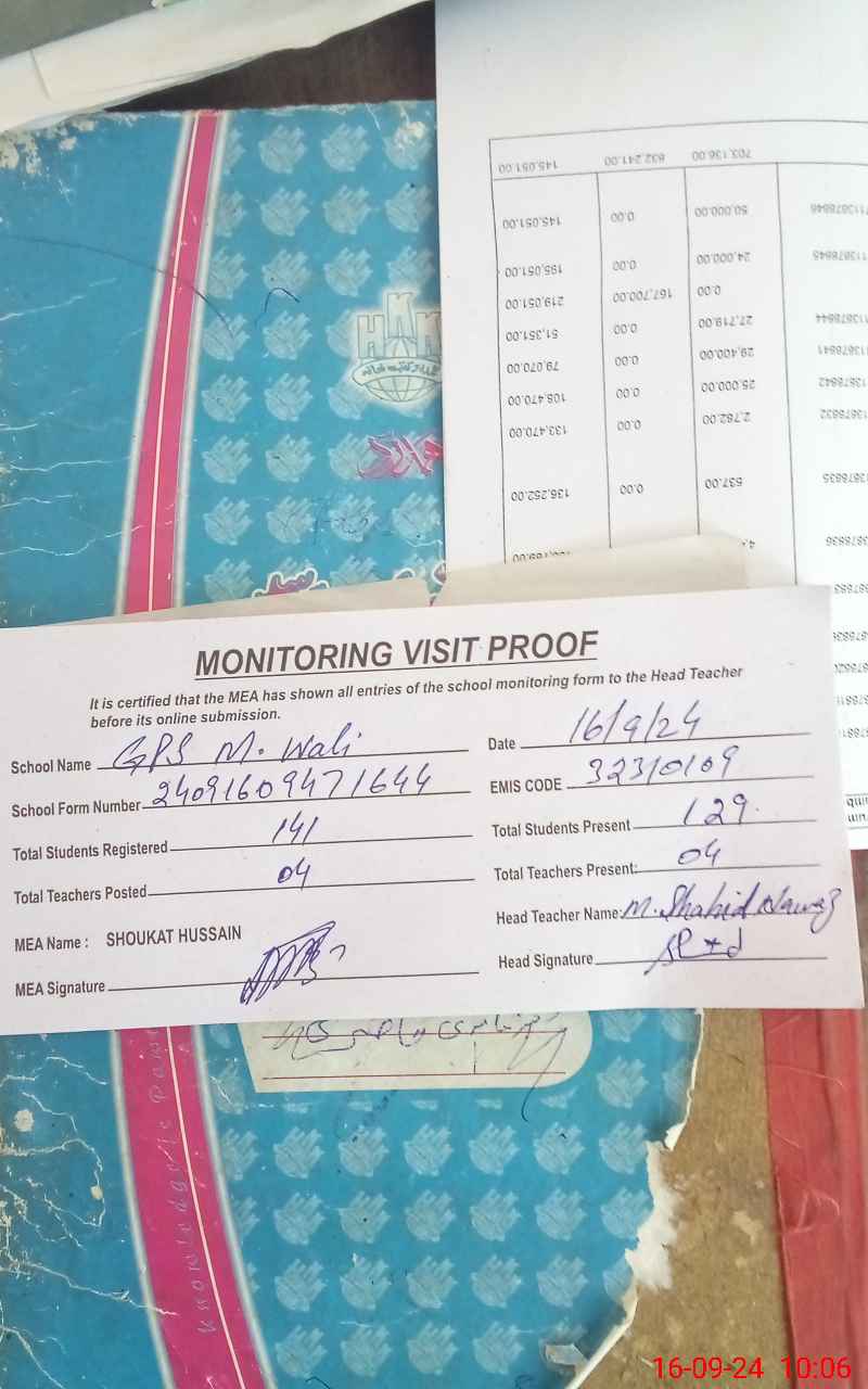 | EMIS Code: 32310109 | Name of School: GPS MUHAMMAD WALI | |||