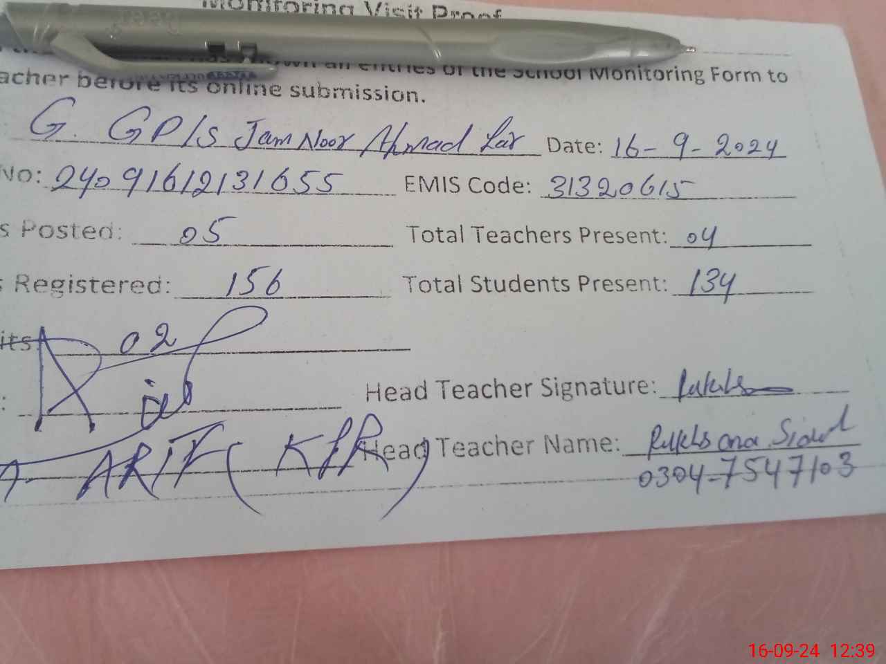 | EMIS Code: 31320615 | Name of School: GGPS NOOR AHMAD LAR | |||