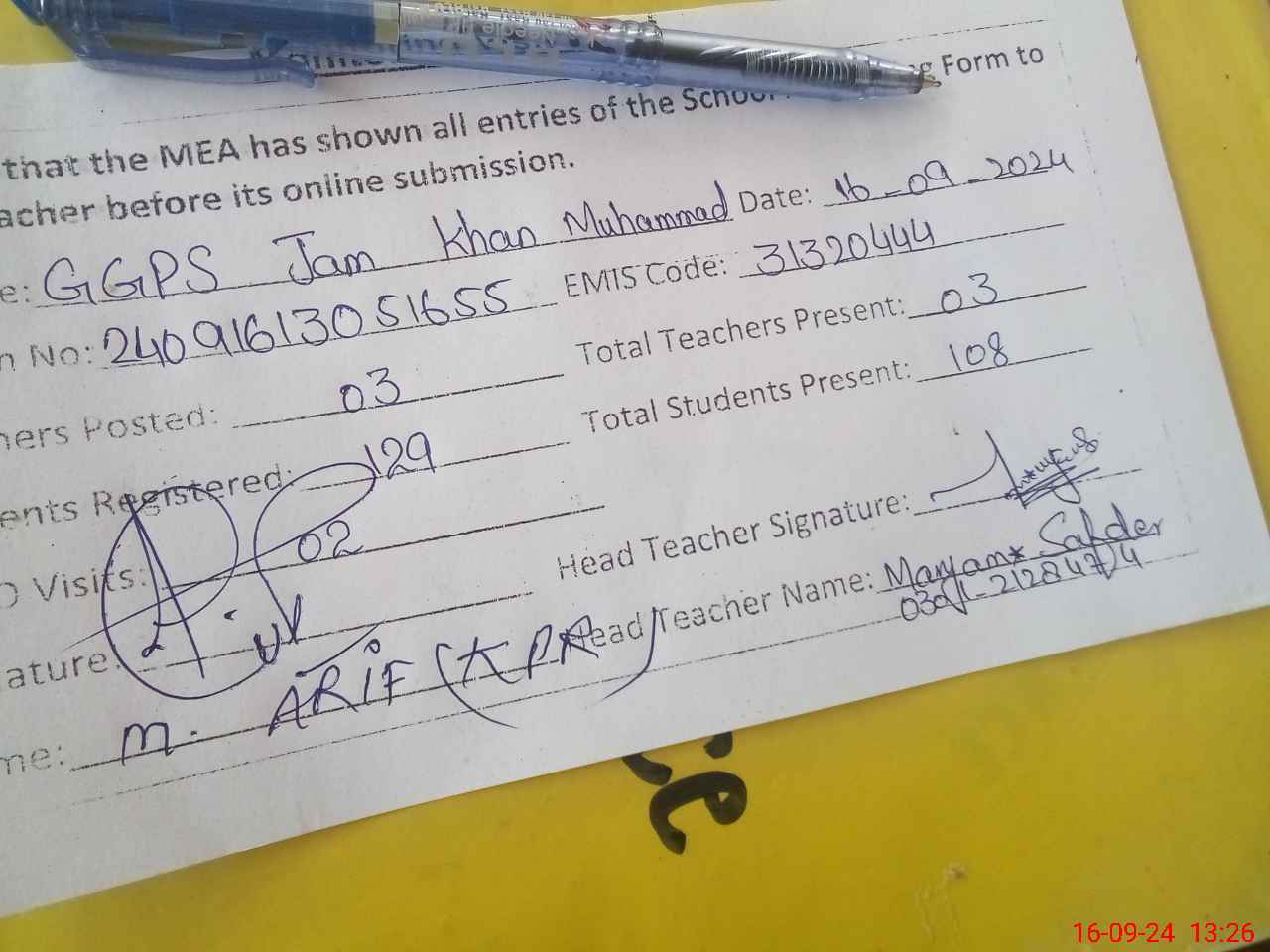 | EMIS Code: 31320444 | Name of School: GGPS JAM KHAN MUHAMMAD | |||