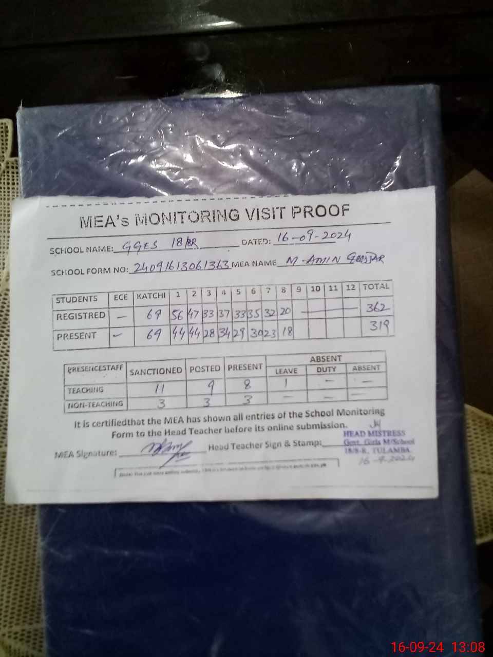 | EMIS Code: 36430125 | Name of School: GGES 18/8-R, TULAMBA | |||