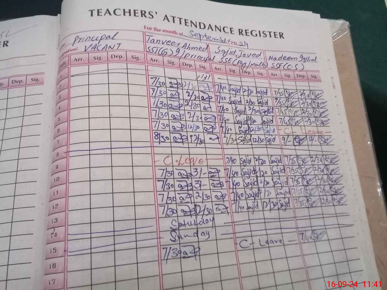 | CNIC | Full Name | Designation | R/C | Absence during last cal. month |