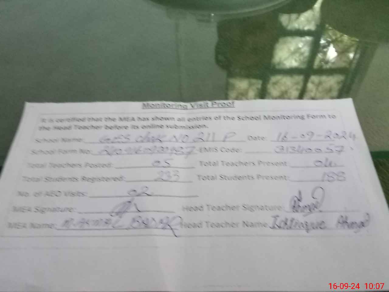 | EMIS Code: 31340057 | Name of School: GES CHAK 211/P | |||