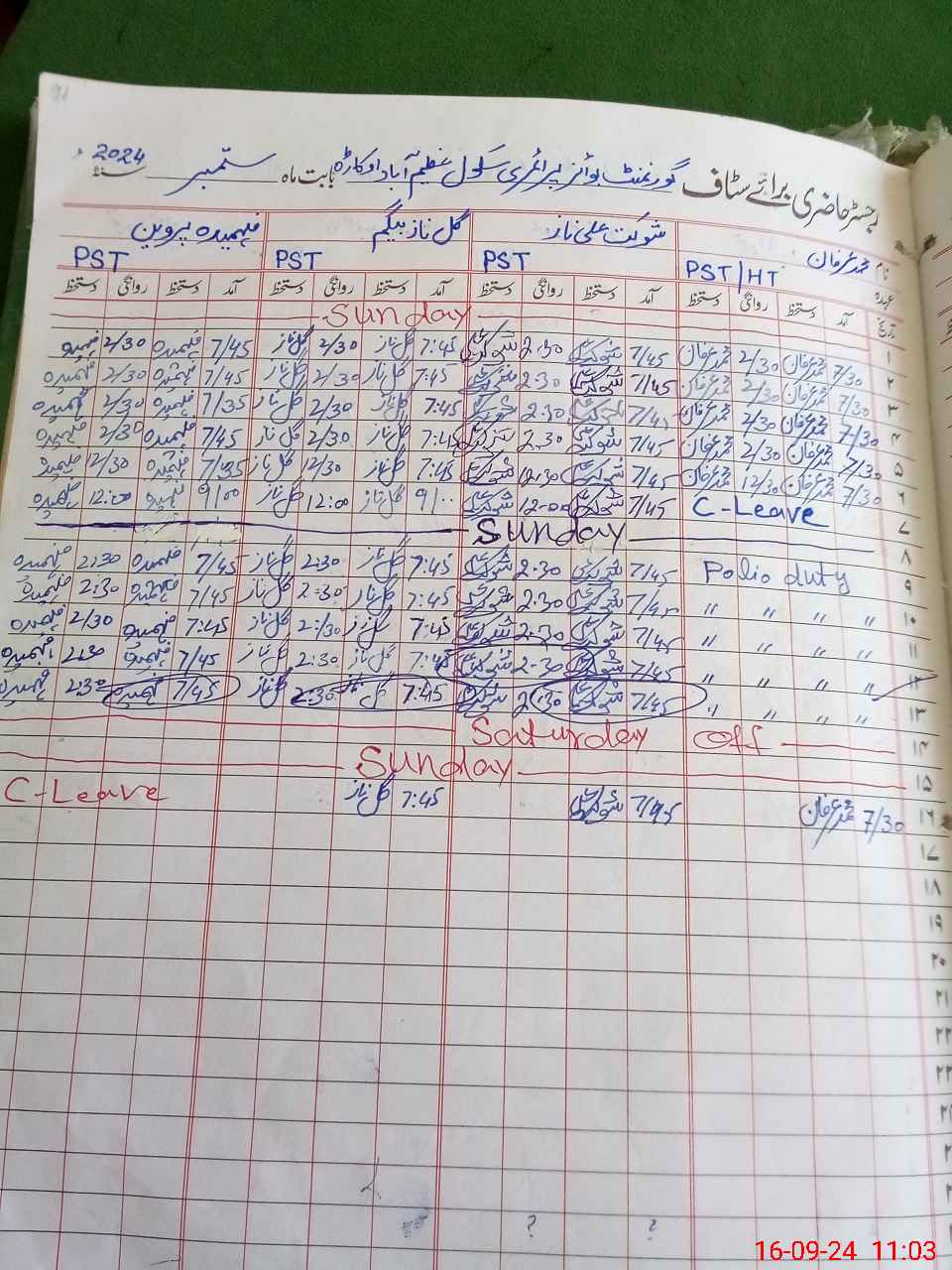 | 35**** | Fa**** Pa**** | PST | Regular | 2 | 0 | 0 | 0 | 0 | 0 | 0 | 0 | 2 | Casual |