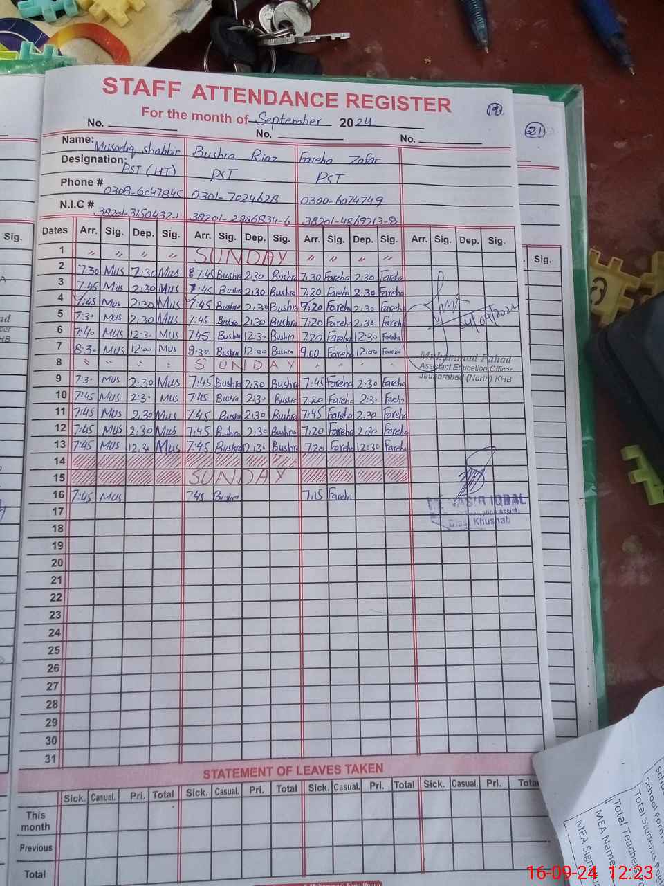 | Name: Mu**** Sh**** Designation: (School Headmaster's/Headmistress's) PST Phone/Cell Number: 03**** |