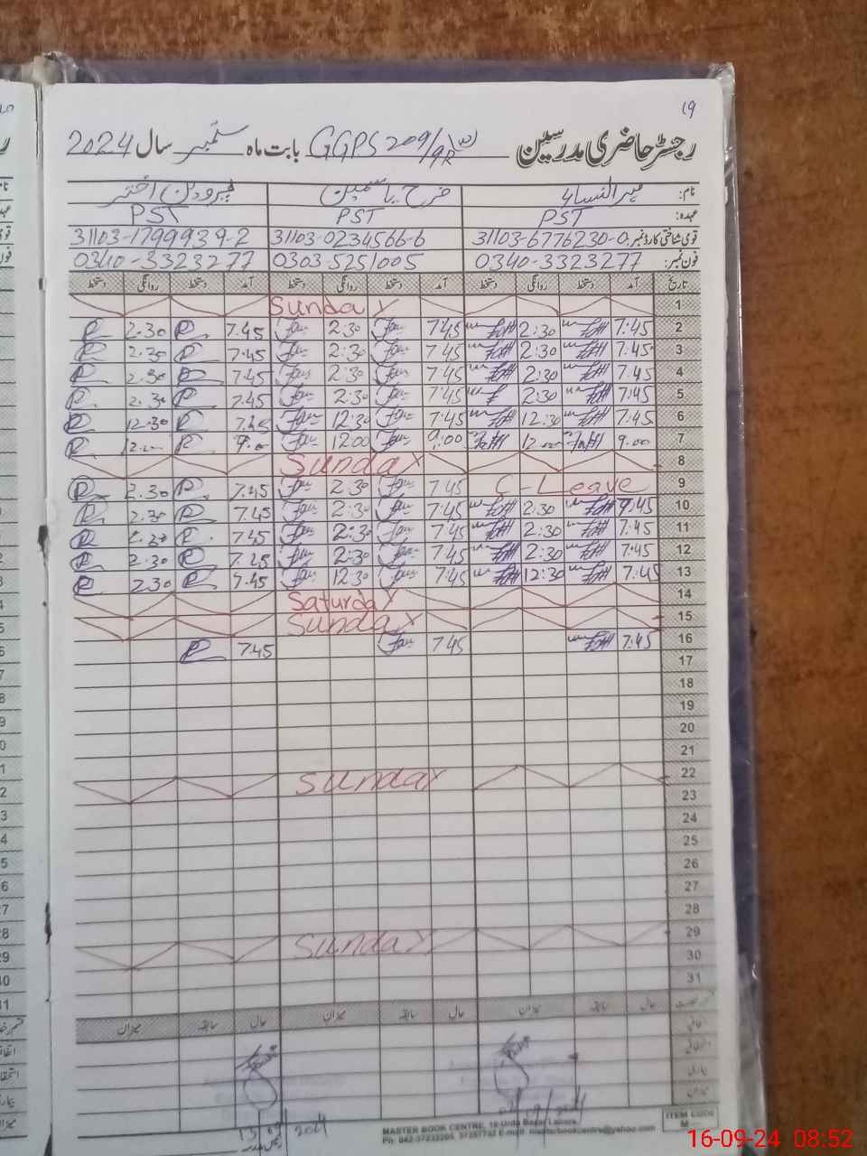 | CNIC | Full Name | Designation | R/C | Absence During Last Calender Month |
