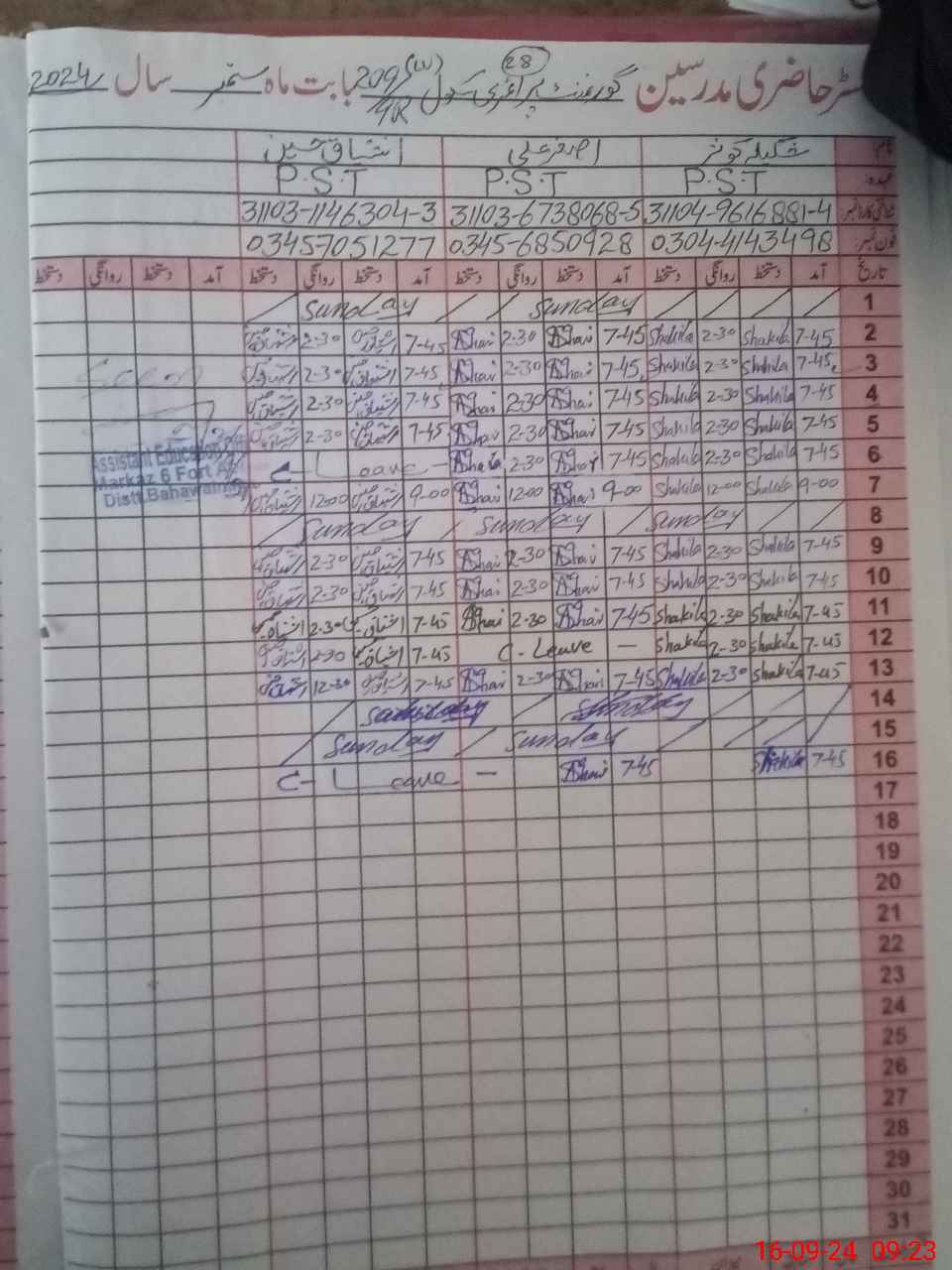 | District: BAHAWALNAGAR | Tehsil: FORT ABBAS | Markaz: FTS-VI-MALE | Level: Primary | |