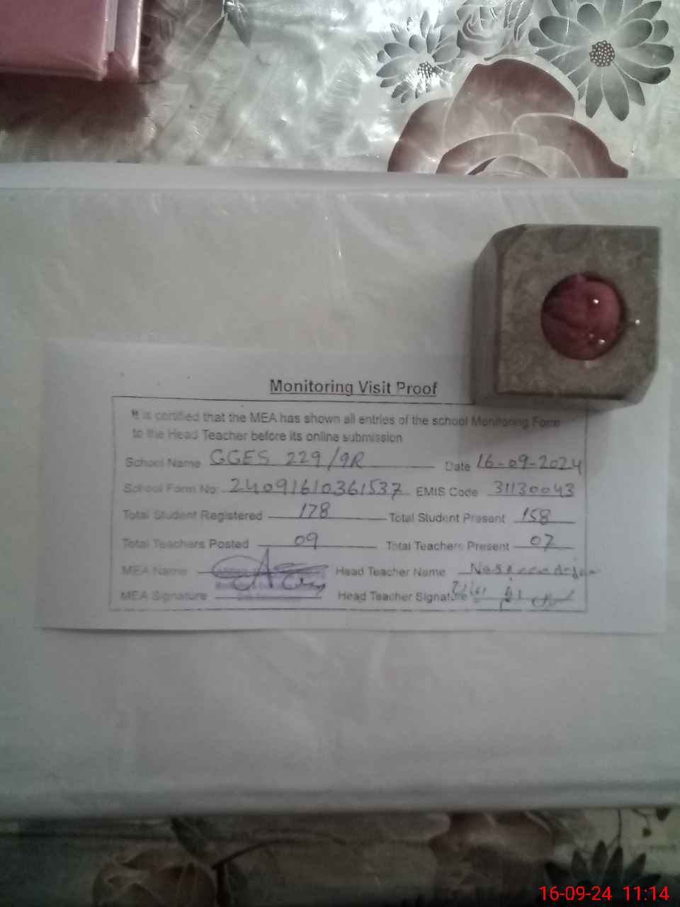 | Certified that this School was Inspected by the Undersigned MEA/DMO Today and the Information Stated Above is as Per Record. | |||||