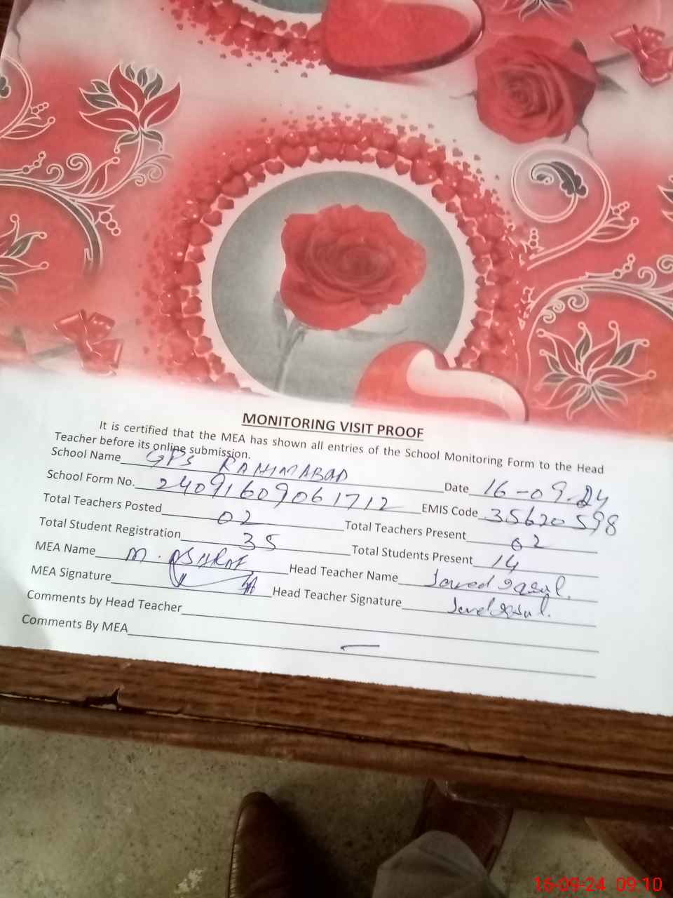 | EMIS Code: 35620598 | Name of School: GPS RAHIM ABAD CHAK NO. 78 RB | |||