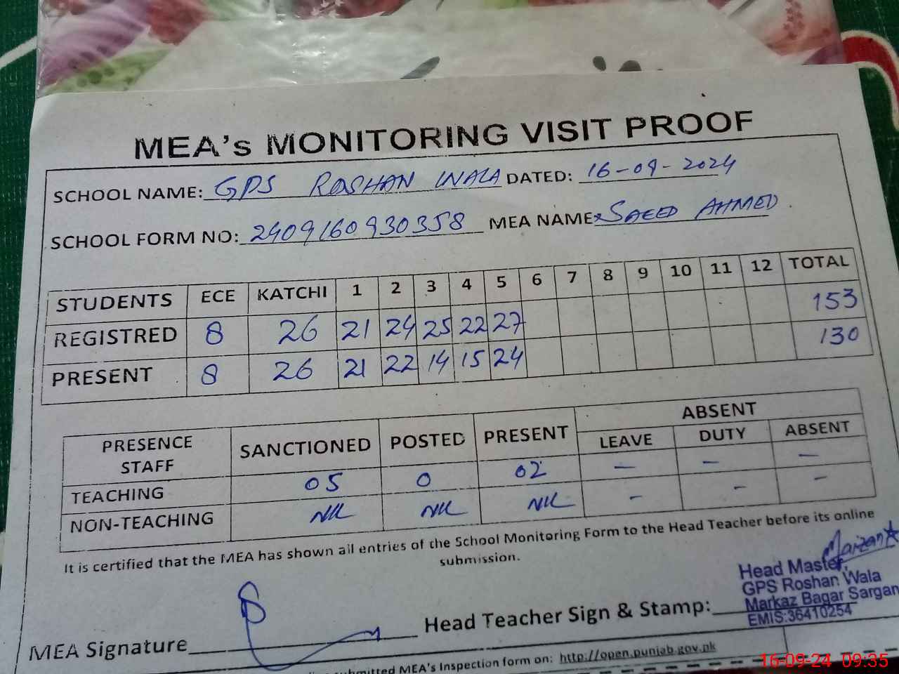 | EMIS Code: 36410254 | Name of School: GPS ROSHAN WALA, SARAI SIDHU | |||