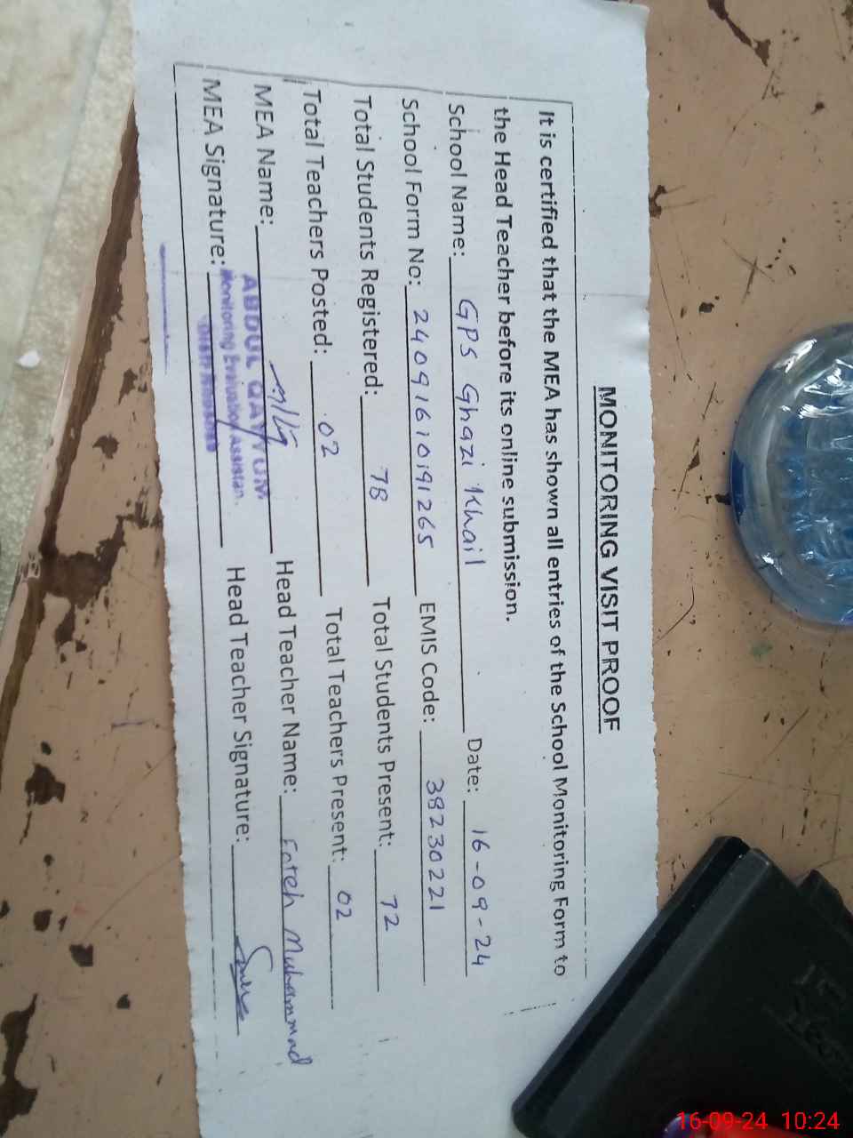 | EMIS Code: 38230221 | Name of School: GPS GHAZI KHAIL | |||