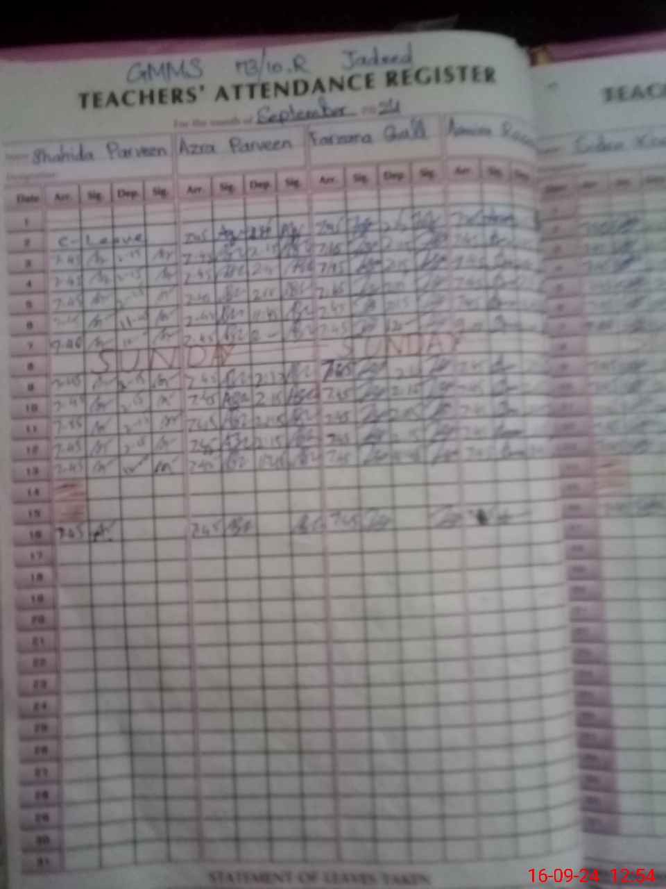 | CNIC | Full Name | Designation | R/C | Absence During Last Calender Month |