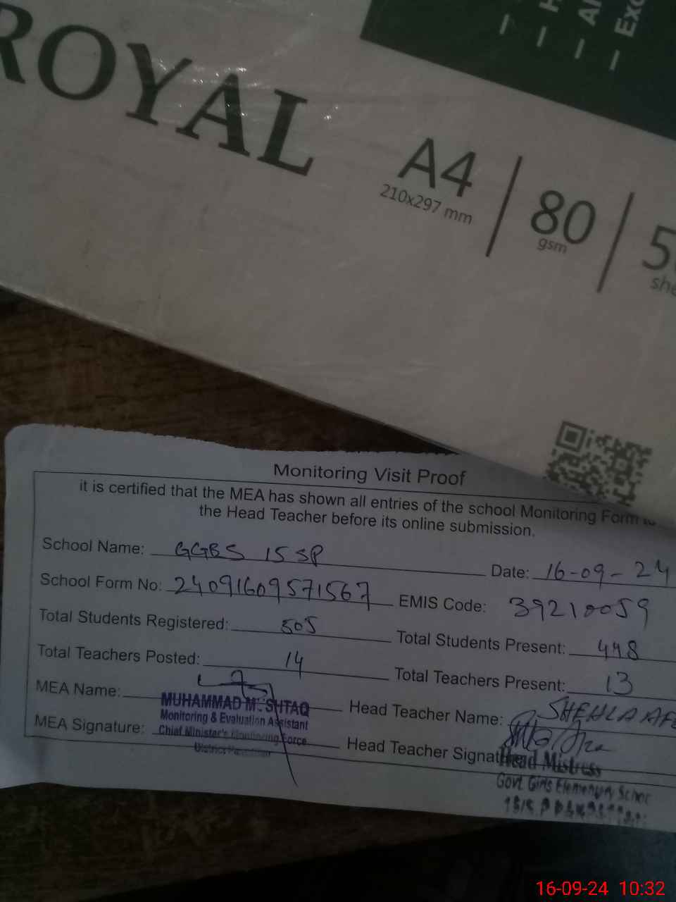 | Name: SH**** AF**** Designation: (School Headmaster's/Headmistress's) S.S.T.(GEN) Phone/Cell Number: 03**** |