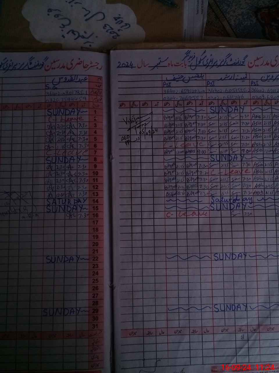 | Leave | Duty | Absent | Maternity | Medical | Ex- Pak |