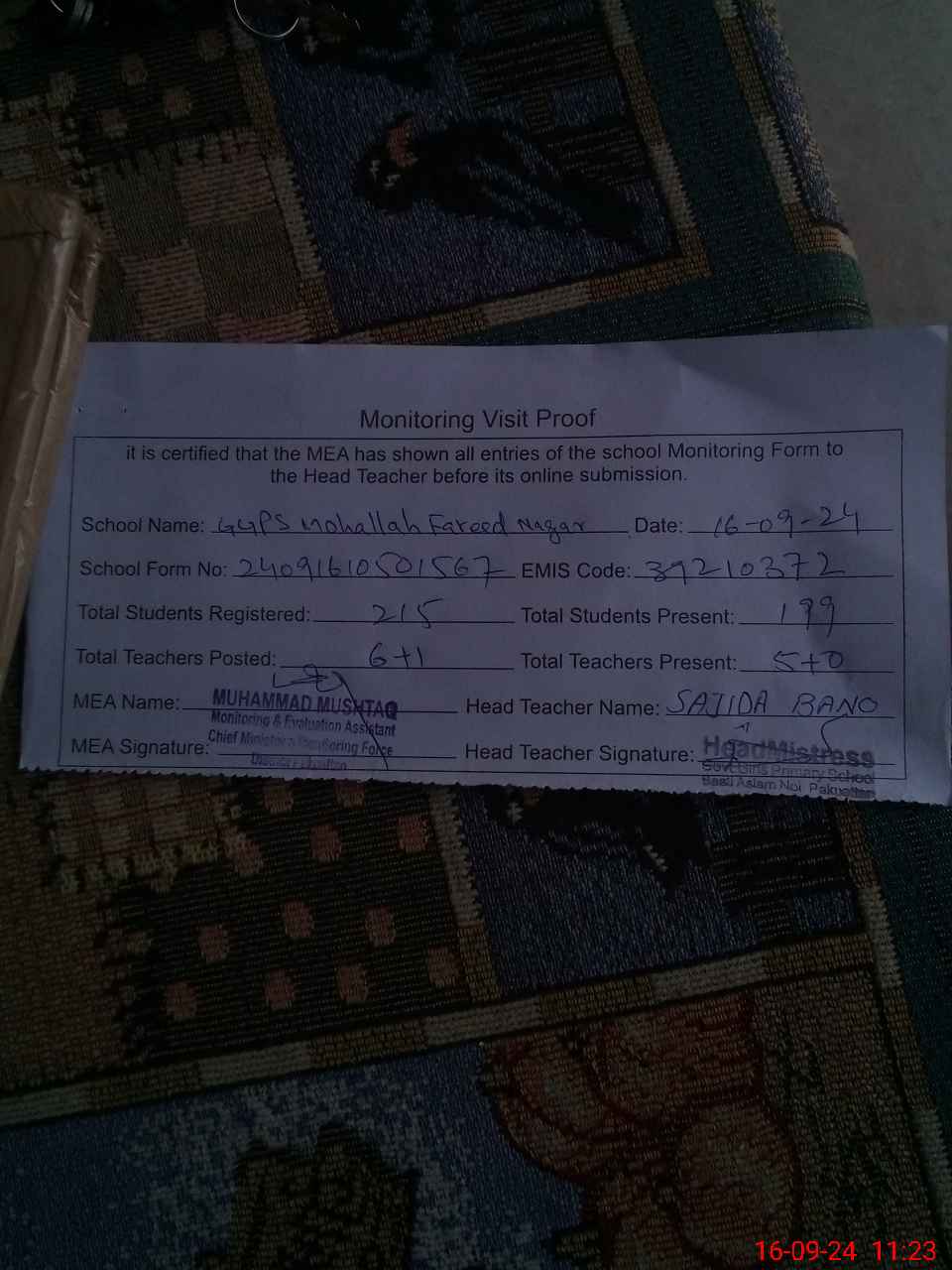 | EMIS Code: 39210372 | Name of School: GGPS MOHALLAH FAREED NAGAR | |||