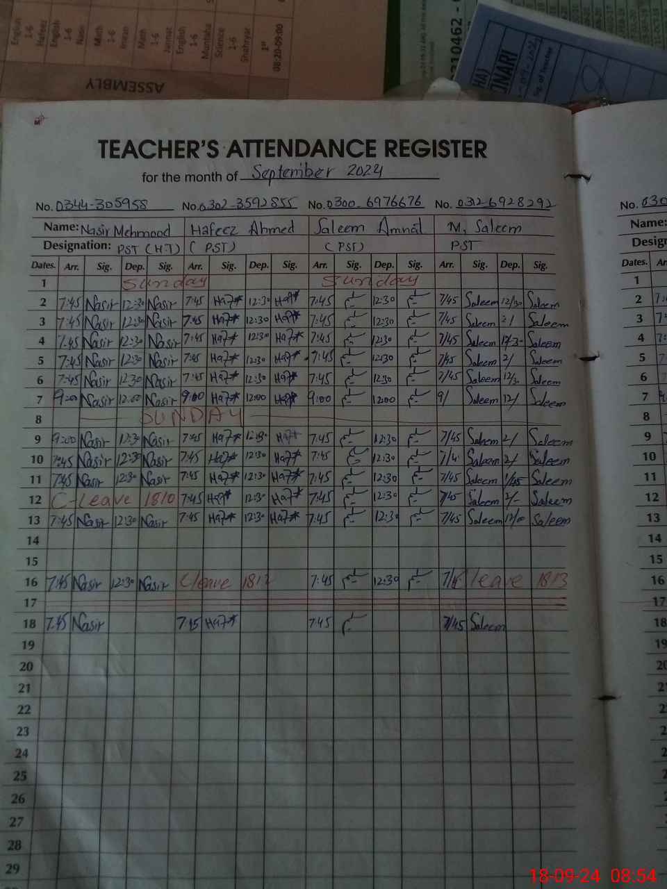 | CNIC | Full Name | Designation | R/C | Absence During Last Calender Month |