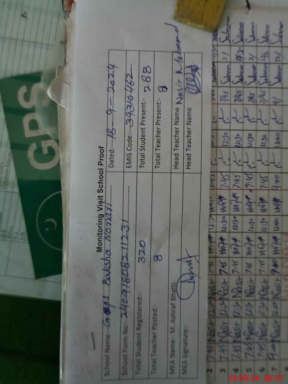 | EMIS Code: 39310746 | Name of School: GMPS NIZAM DIN | |||