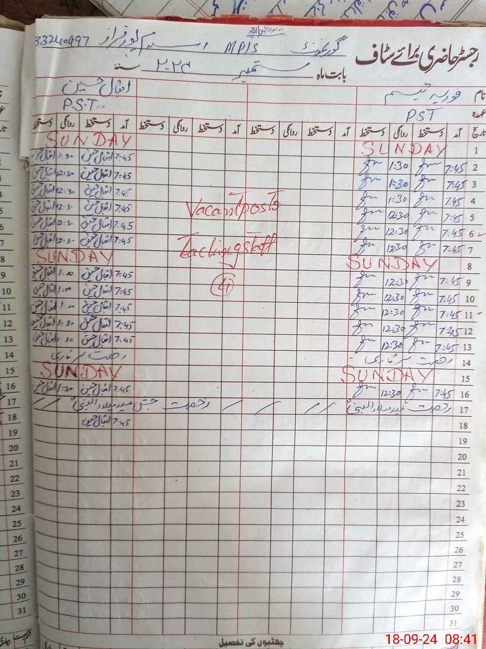 | Name: IQ**** HU**** Designation: (School Headmaster's/Headmistress's) PST Phone/Cell Number: 03**** |