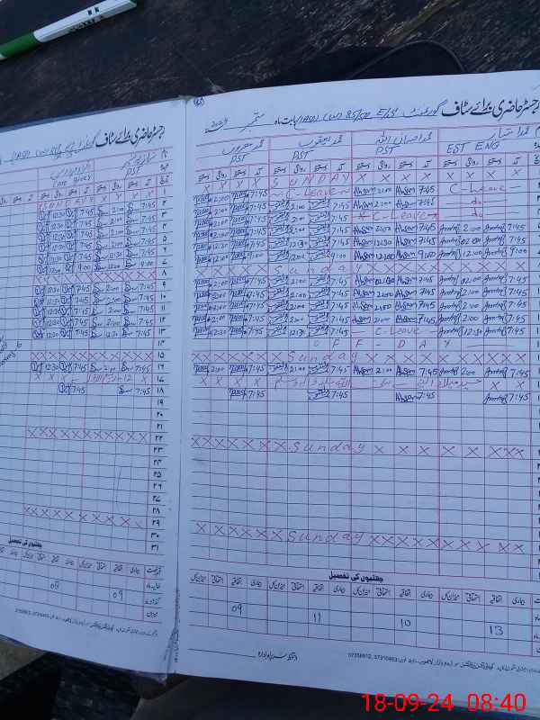 | CNIC | Full Name | Designation | R/C | Absence During Last Calender Month |
