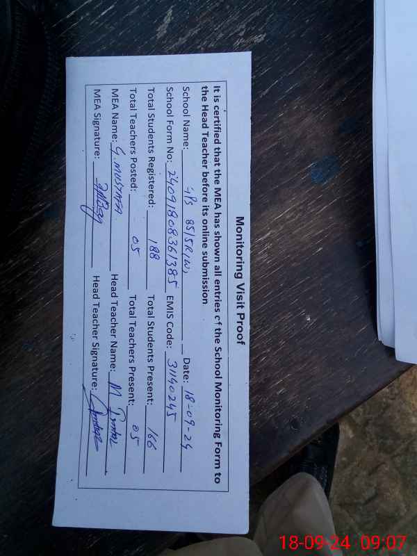 | Attendance Register | Head Teacher | MEA with School | Visit Proof |