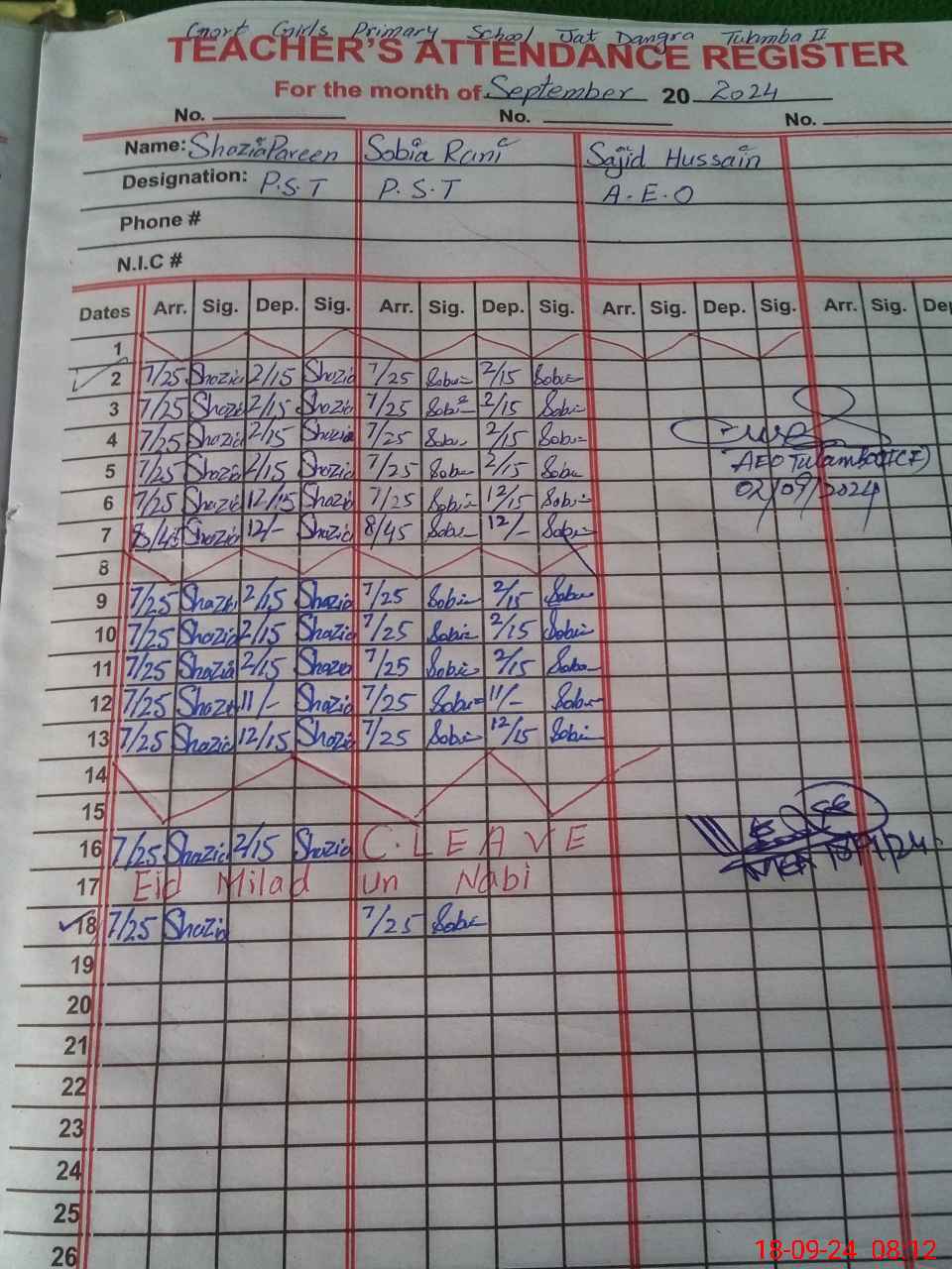 | Name: SH**** PA**** Designation: (School Headmaster's/Headmistress's) PST Phone/Cell Number: 03**** |