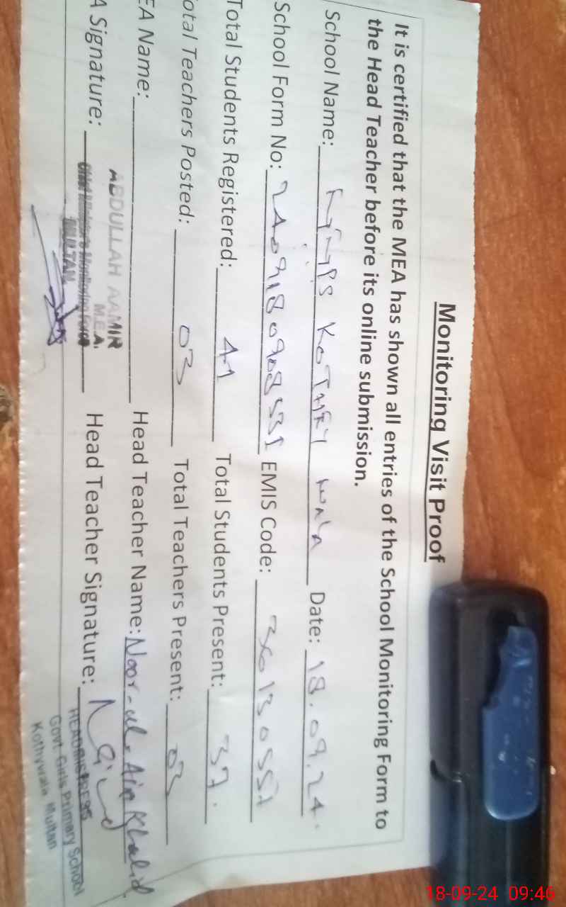 | EMIS Code: 36130551 | Name of School: GGPS KOTHAY WALA | |||