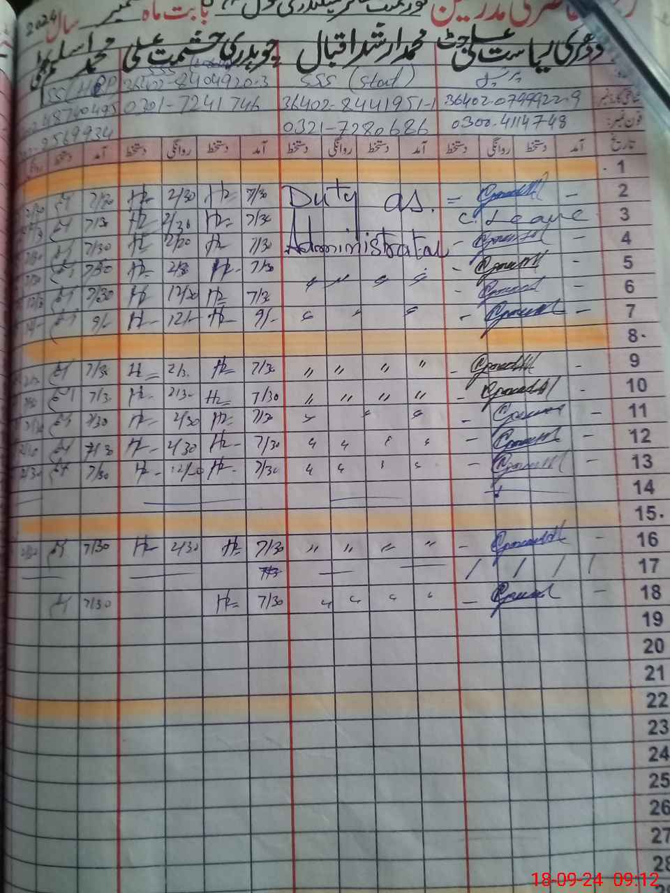 | Leave | Duty | Absent | Maternity | Medical | Ex- Pak |