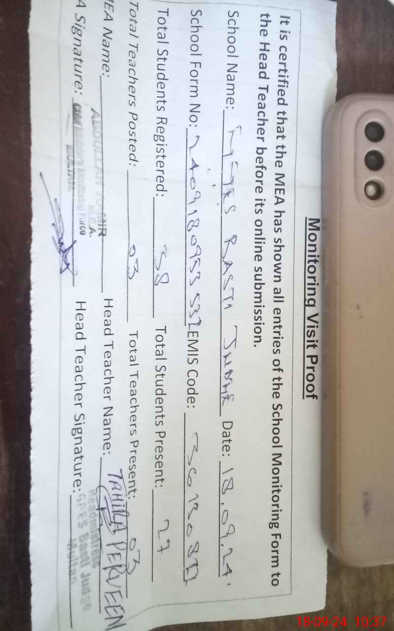 | EMIS Code: 36130811 | Name of School: GGES Basti Judge Multan | |||