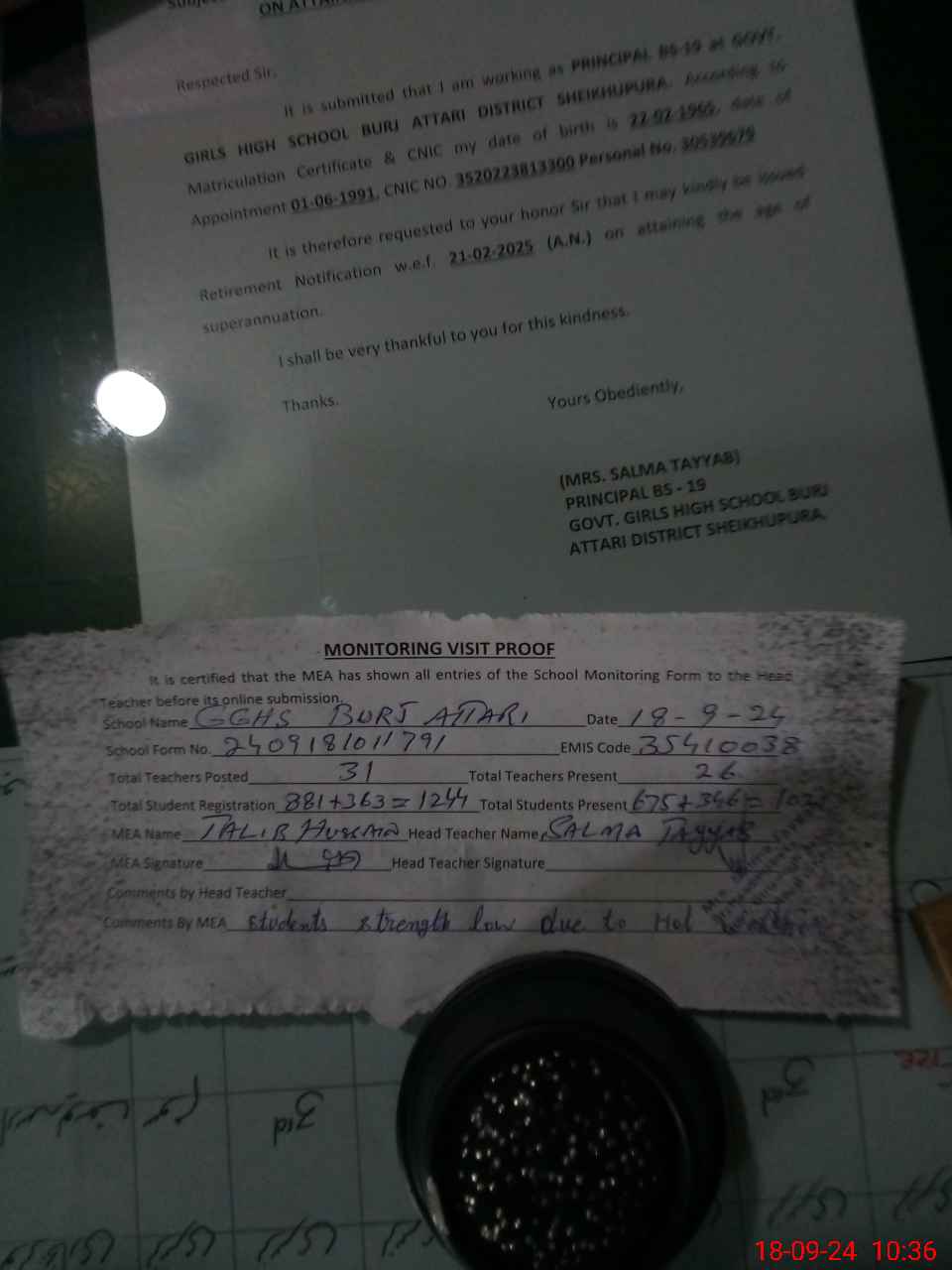 | Name: SA**** TA**** Designation: (School Headmaster's/Headmistress's) Senior Headmaster Phone/Cell Number: 03**** |