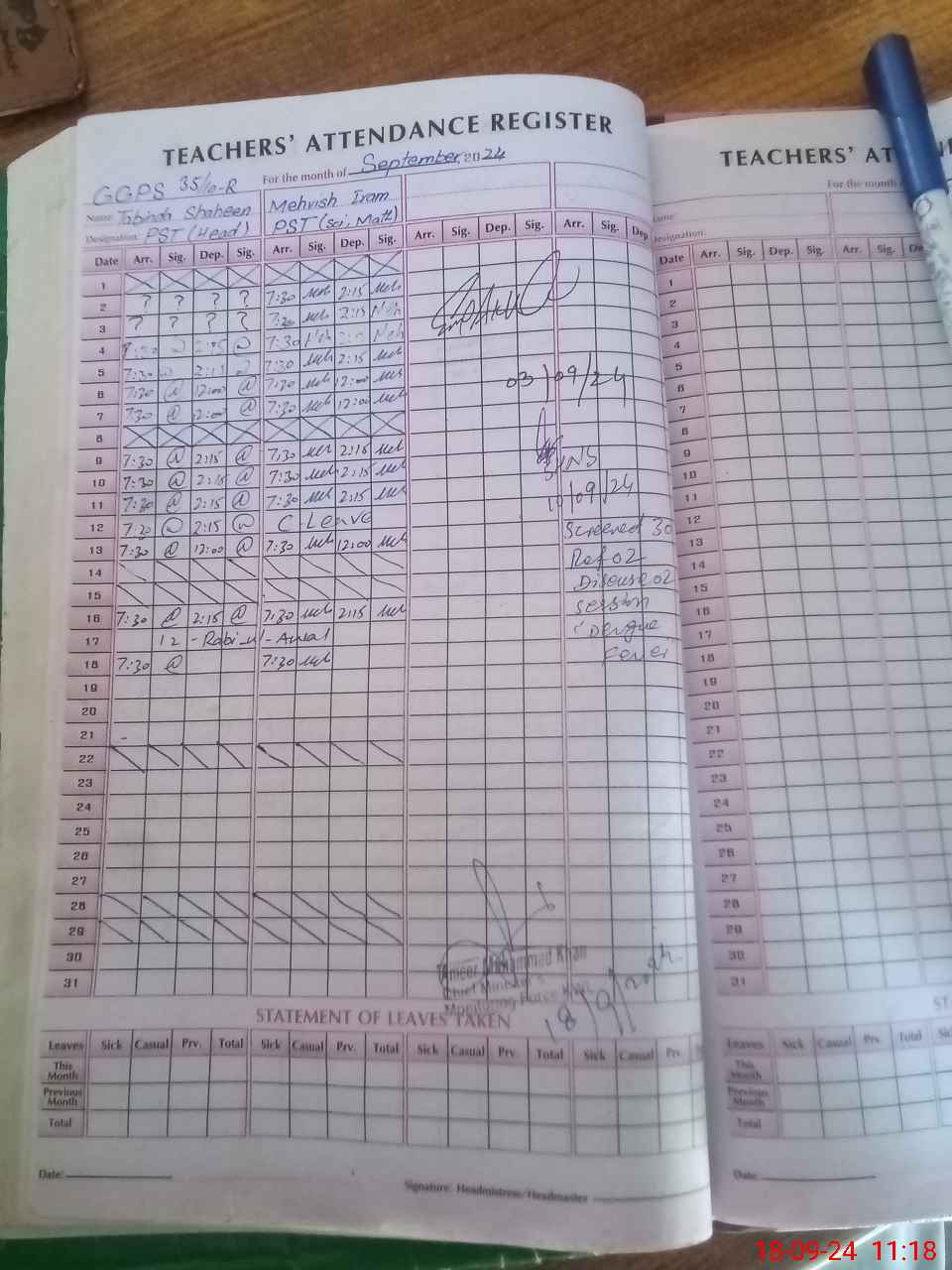 | Name: Me**** Ir**** Designation: (School Headmaster's/Headmistress's) PST Phone/Cell Number: 03**** |