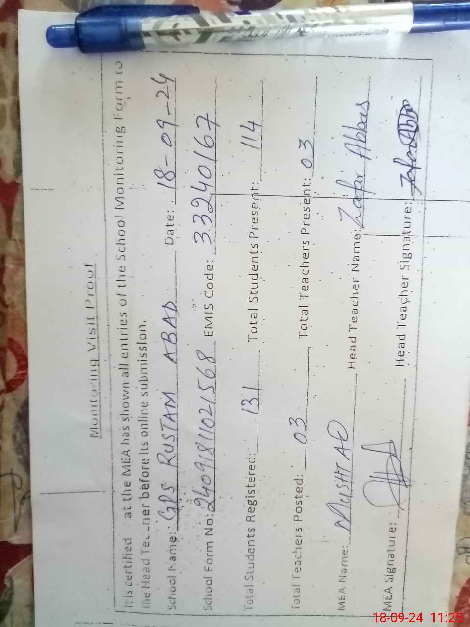 | EMIS Code: 33240167 | Name of School: GPS RUSTAM ABAD | |||